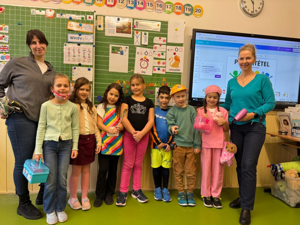 Ezt követően angolul is megismerkedtek a foglalkozások neveivel, és beszélgettek arról, ki mi szeretne lenni felnőttként. Végül minden tanuló lerajzolta, milyen hivatást képzel el magának. A rajzokat gondosan elteszi az osztály, hogy 4. osztály végén újra elővegyük, majd megnézhessük, hogyan változtak a gyerekek elképzelései.